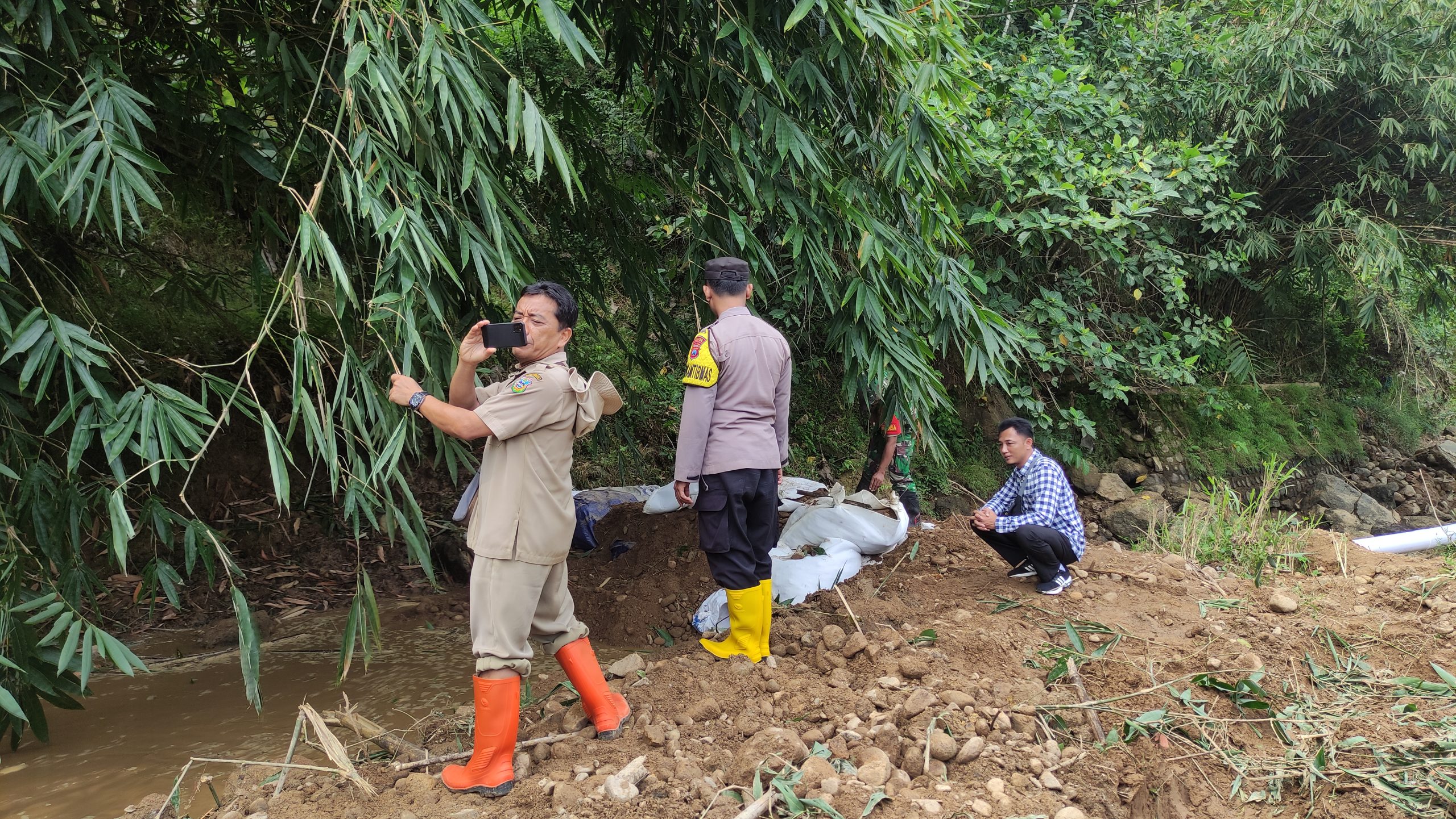 Arjosari – Pemerintah Desa Mlati, Kecamatan Arjosari, bergerak cepat pasca robohnya Cek Dam Dusun Tulakan di aliran Sungai Mlati. Untuk menghindari terhentinya pasokan air ke lahan pertanian, warga bersama pemerintah membangun dam darurat menggunakan tanggul karung berisi pasir (sandbag).