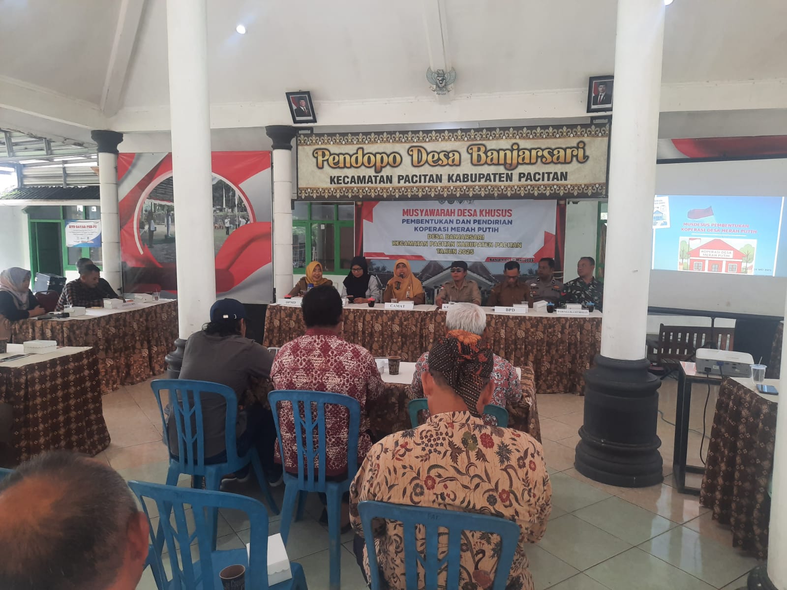 Pacitan – lensa Pacitan, Upaya membangun kemandirian ekonomi berbasis potensi lokal terus digalakkan Pemerintah Desa Banjarsari, Kecamatan Pacitan. Salah satunya melalui pembentukan Koperasi Merah Putih, yang kini resmi dimulai lewat Musyawarah Desa Khusus (Musdesus) di Balai Desa Banjarsari, Senin (20/5/2025).