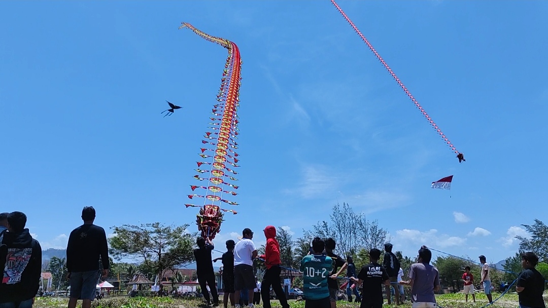 Festival layang-layang ini dimulai sejak Minggu pagi, dengan peserta dari berbagai daerah yang menyiapkan layang-layang mereka. Karakter layang-layang yang diterbangkan pun beragam, mulai dari burung elang, pesawat, hingga naga raksasa. Beberapa layang-layang berhasil mengudara dengan mulus, sementara beberapa lainnya menghadapi kendala saat diterbangkan.