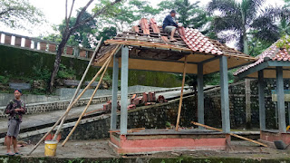 Termasuk memantau dan mendata sejumlah gazibo yang dirasa butuh perhatian. ‘’Atap gazibo itu beberapa hari yang lalu sempat tertimpa pohon beringin tapi sudah dibersihkan, dan sayangnya kemarin gentingnya jatuh,’’ paparnya.