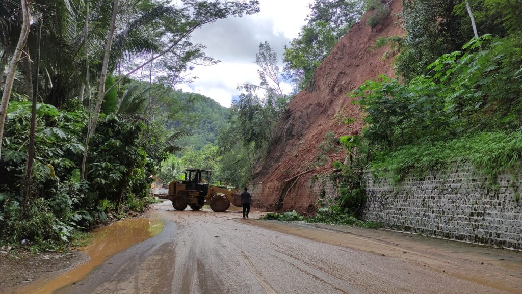 Pacitan – Proses pembersihan material longsor di kilometer 23 Desa Gedangan, Kecamatan Tegalombo, masih berlangsung hingga Rabu siang (18/12). Longsor yang terjadi pada pagi hari menyebabkan material berupa tanah dan pohon menutup sebagian badan jalan, sehingga arus lalu lintas terganggu.