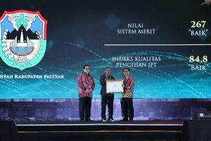 Kaleidoskop 2023 – Memasuki bulan November, kabar baik kembali datang untuk Kabupaten Pacitan. Kali ini datang dari Komisi Aparatur Sipil Negara (KASN). Penghargaan diberikan atas keberhasilan pemerintahan Bupati Indrata Nur Bayuaji dalam mencapai predikat Sistem Merit ‘Baik’. Tidak itu saja, predikat Kualitas Pengisian Jabatan Pimpinan Tinggi (JPT) juga dinilai ‘Baik’.