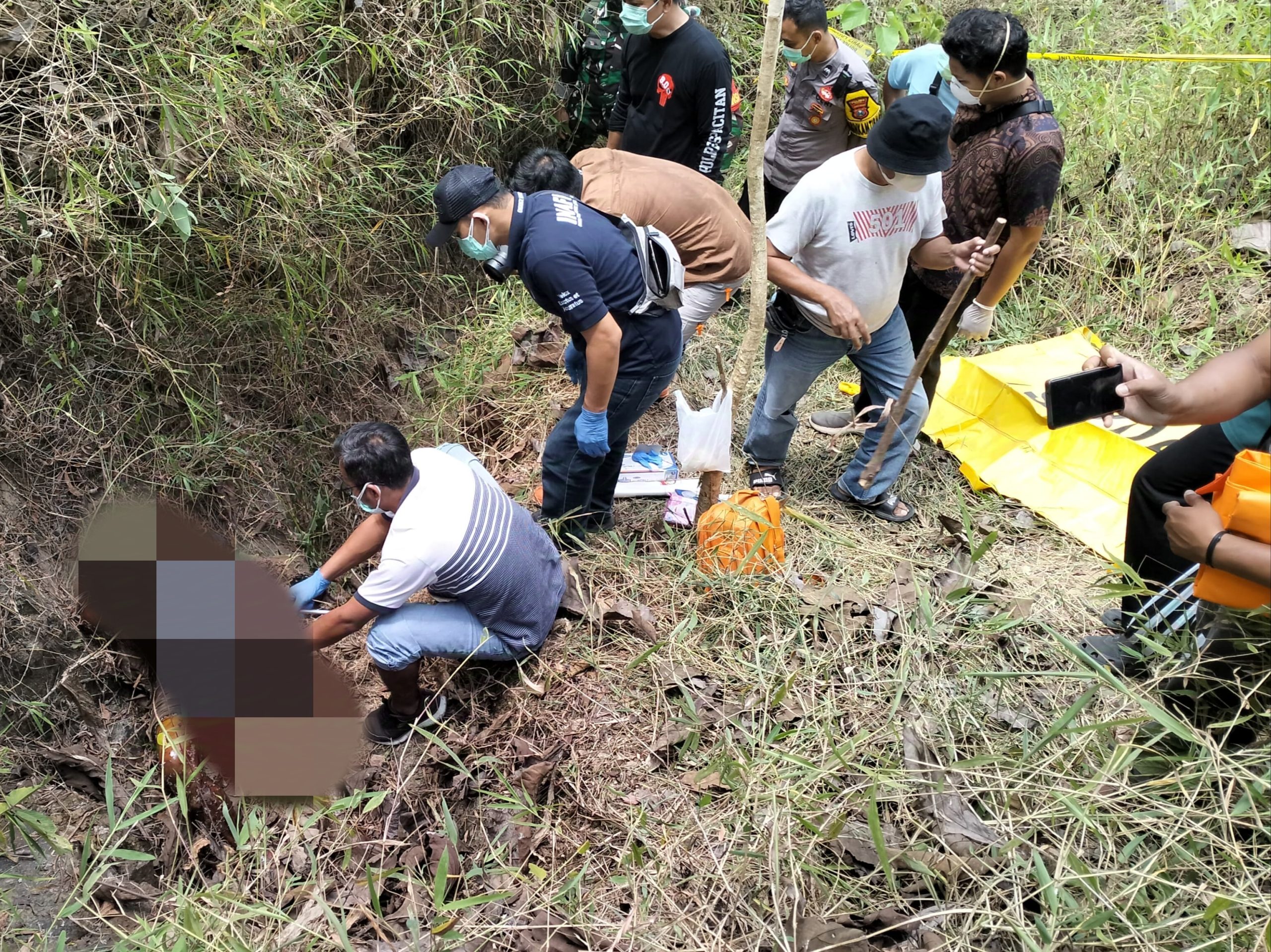 Benar saja, di kedalaman dua meter, mereka melihat sesosok tubuh laki-laki mengenakan kaos hitam dan celana pendek coklat. Setelah dicek lebih lanjut, ciri-ciri tubuh mengarah pada Wawan, buronan kasus pembunuhan di Dusun Drono.