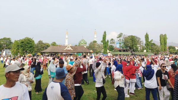 Rangkaian kegiatan dimulai dengan senam pagi, diikuti jalan sehat, hiburan musik, dan pembagian doorprize. Suasana meriah ini seolah menegaskan Ngadirojo sebagai salah satu basis kekuatan pasangan nomor 2, seperti pada Pilbup 2020 lalu.