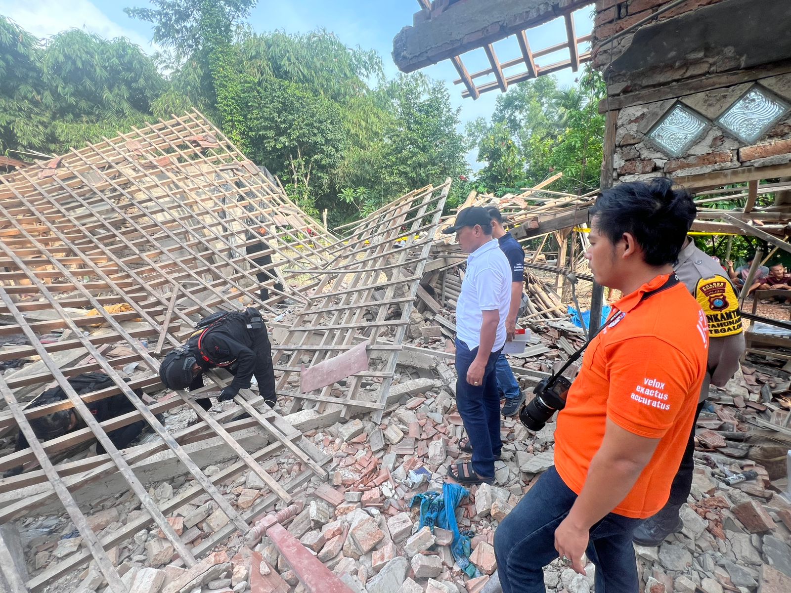 LENSA PACITAN – Penyelidikan kasus ledakan dahsyat yang merusak tiga rumah dan melukai lima warga di Desa Tahunan Baru, Kecamatan Tegalombo, Kabupaten Pacitan, terus dilakukan aparat kepolisian. Unit Penjinak Bom (Jibom) Korps Brimob Polda Jawa Timur diterjunkan untuk menyisir lokasi kejadian guna memastikan sumber dan penyebab ledakan.